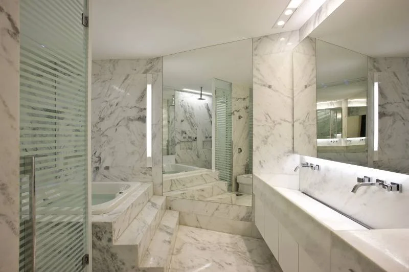 O box é sempre desenvolvido em vidro temperado, por se tratar de um vidro de segurança, até cinco vezes mais resistente que o vidro comum.