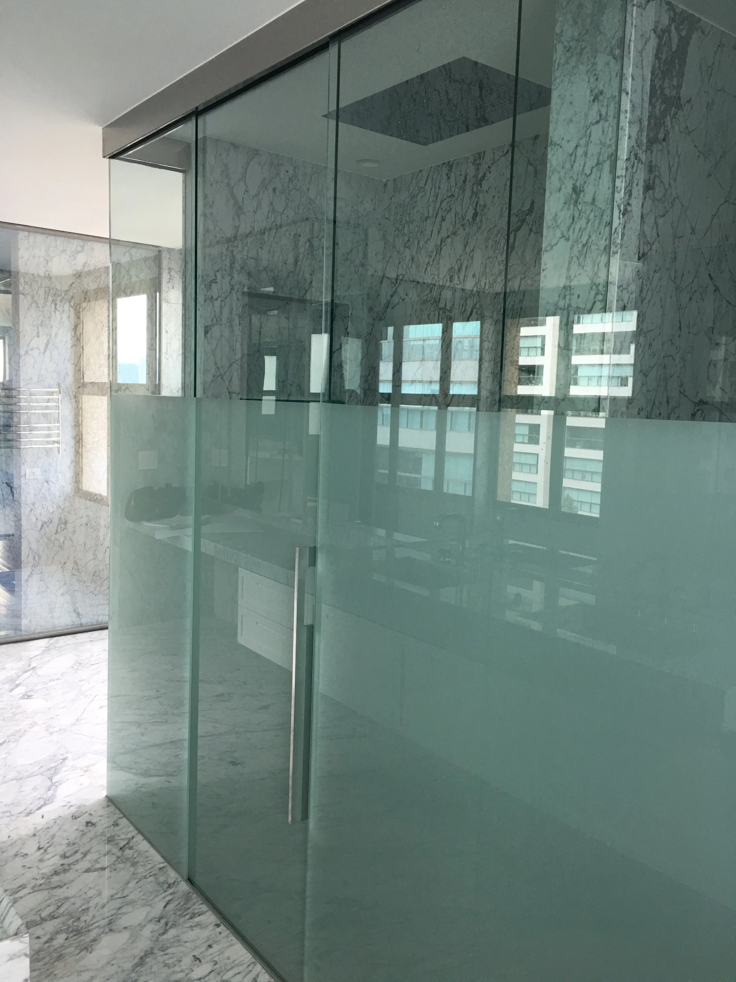 Pode ser de correr ou pivotante com vários tipos de acabamento: incolor, serigrafado, refletivo entre outros. A Vintage Vidros dispõe de ferragens especiais para tornar o seu projeto diferenciado.