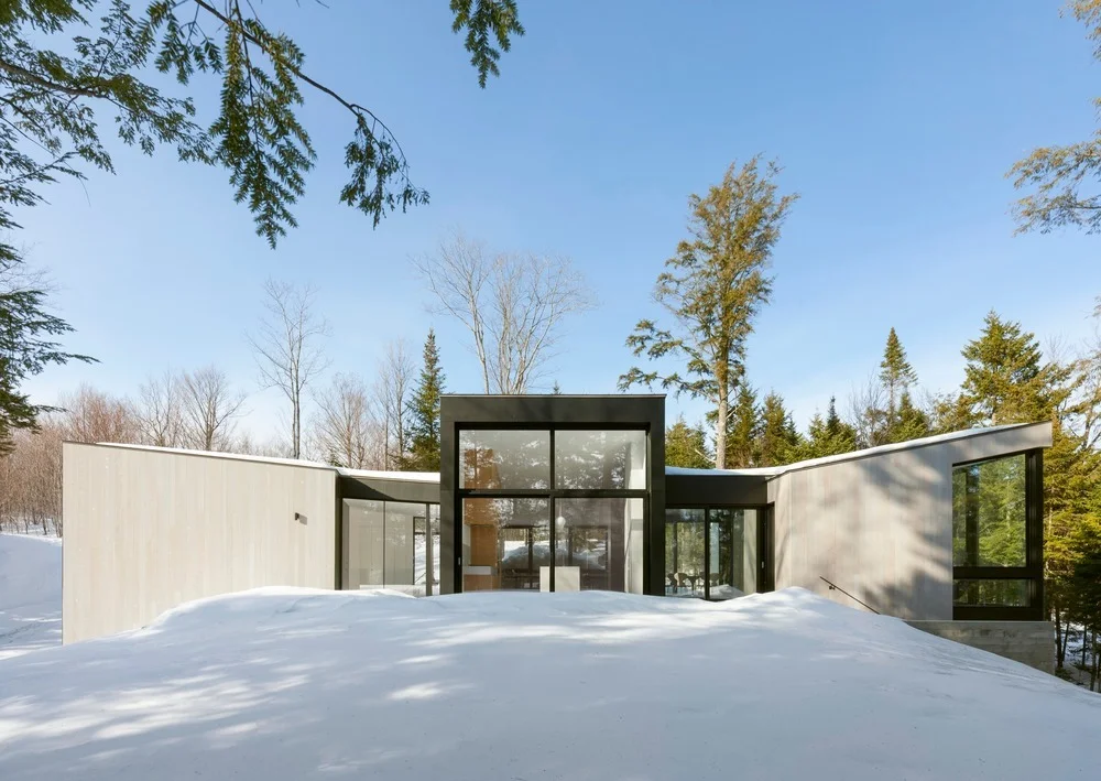As estonteantes paisagens dos bosques canadenses são um convite para a apreciação. Por isso, ao construir uma casa no meio de um desses terrenos arborizados, os arquitetos do escritório YH2 Architecture não tiveram dúvidas ao optar pelo vidro como material principal do pavilhão central da residência. A integração que o vidro permite é, sem dúvidas, o ponto alto do projeto.